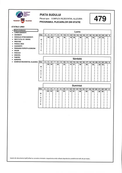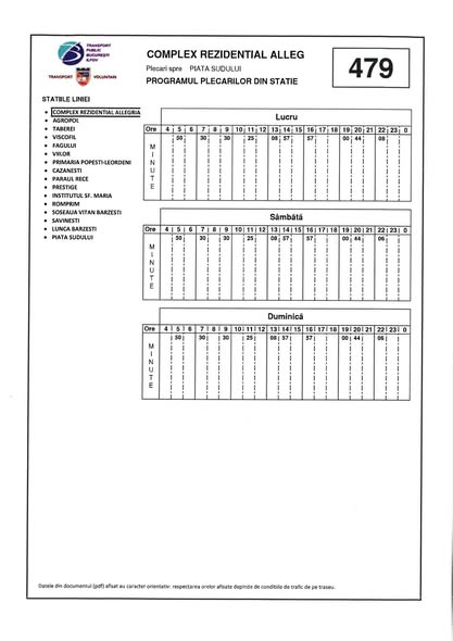 Anunț prelungirea traseului liniei 479Traseul liniei 479 se prelungește.Stimați locuitori, știm cât de important este să ajungeți ușor și la timp acasă sau la locul de muncă. Pentru a veni în întâmpinarea nevoilor dumneavoastră de deplasare, Primăria Glina a solicitat prelungirea traseului liniei 479.Ne bucurăm să vă anunțăm că, în urma finalizării procedurilor necesare, începând cu data de 28 februarie 2026, traseul autobuzelor liniei 479 se prelungește pe raza comunei noastre până la stația „Complex Rezidențial Allegria”.Am atașat acestei postări graficul cu orele de plecare planificate, transmis de conducerea transportului public.